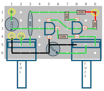 Fuzz Faceの実体配線まで考えたので、あとは実装してみる。